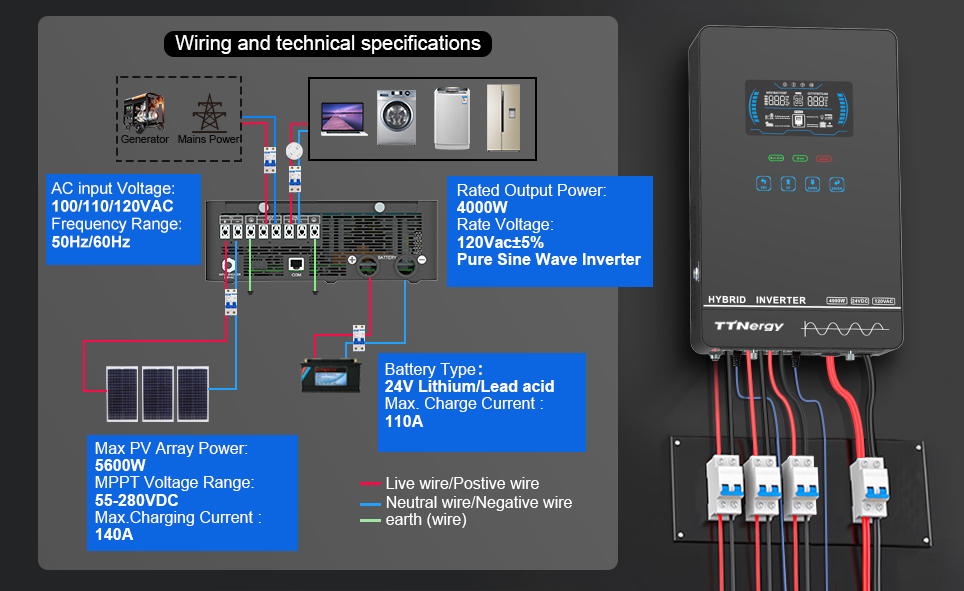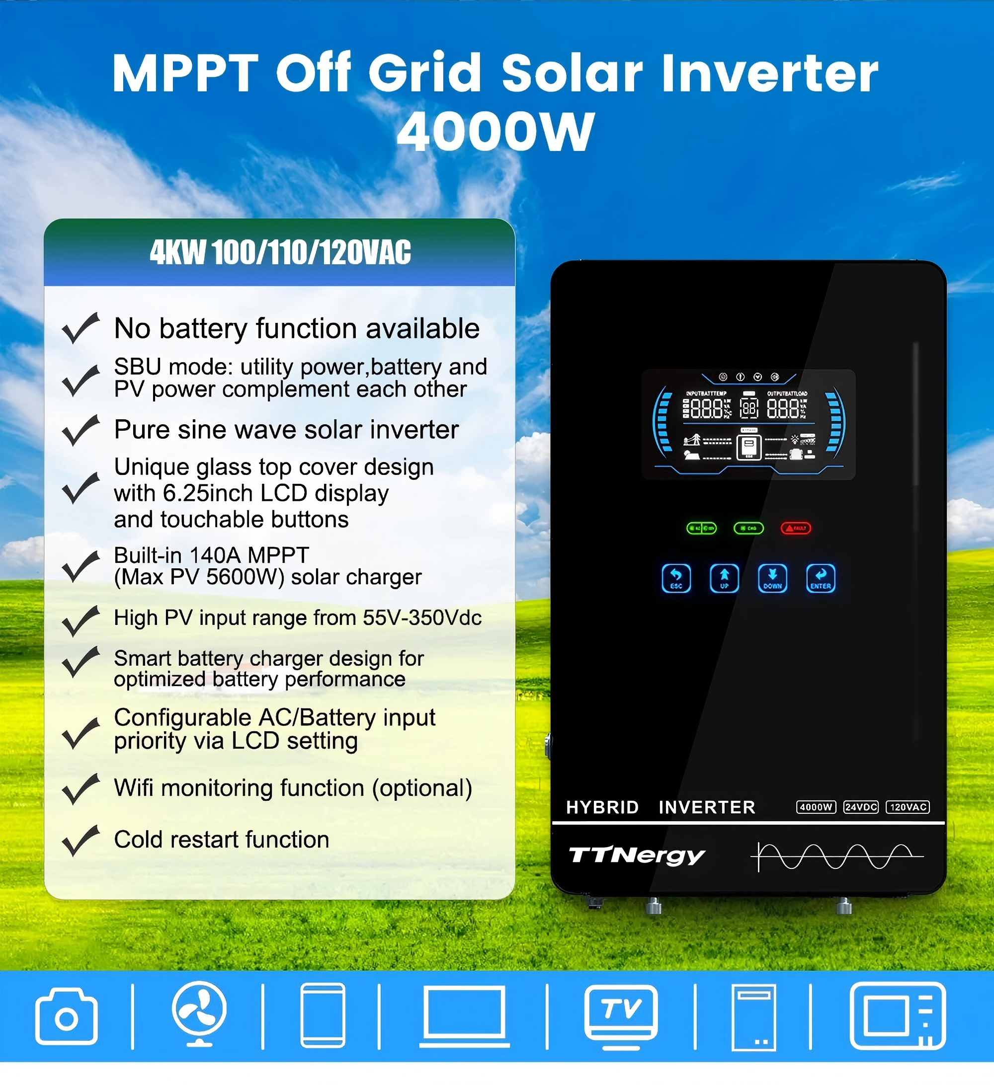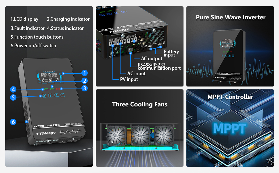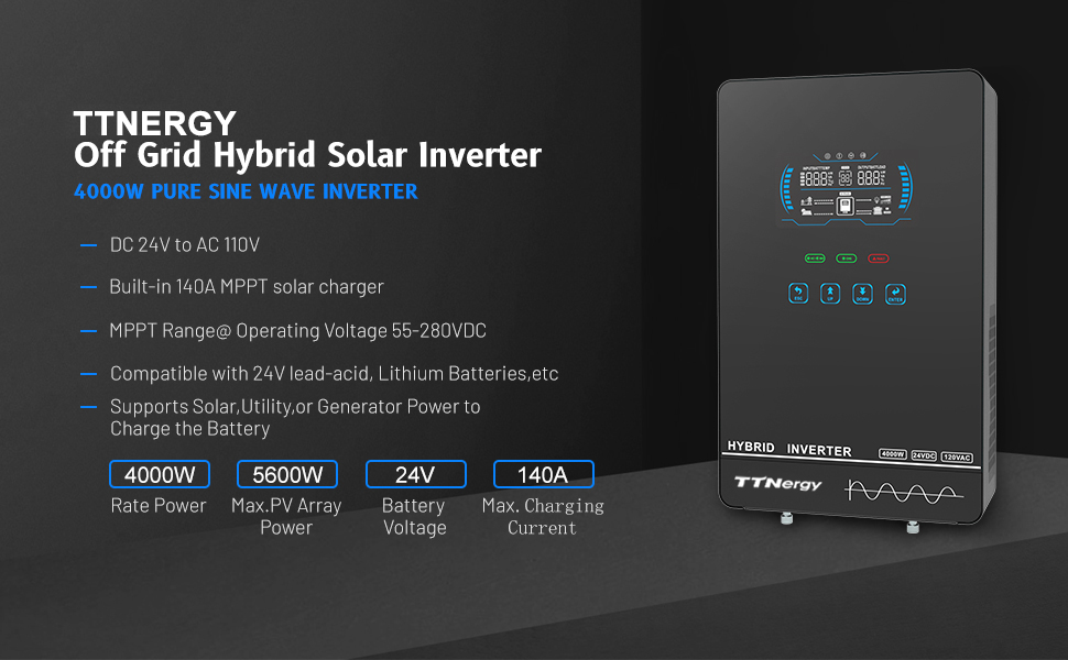 6 Built-in140A MPPT(Max PV 5600W)solar charger