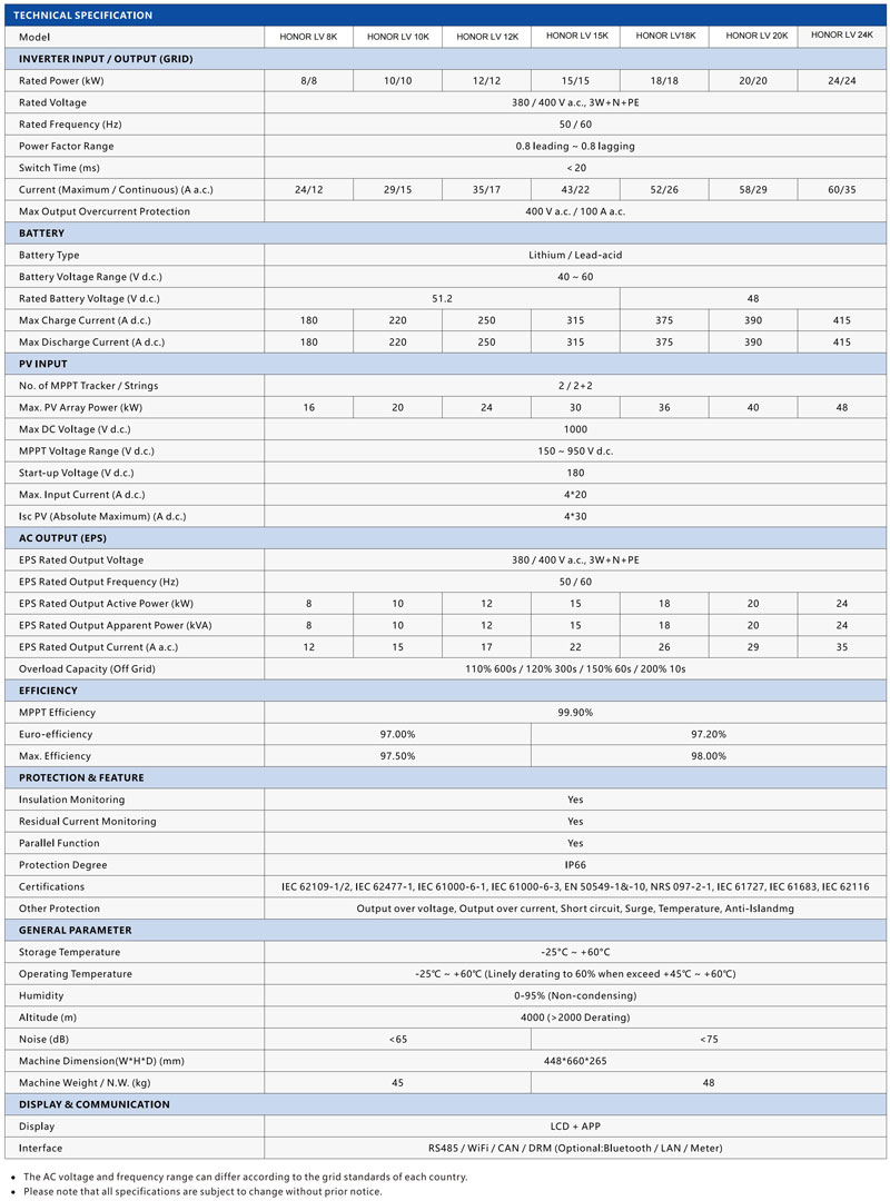 HONOR LV 3-phase 8-24K Solar Inverters
